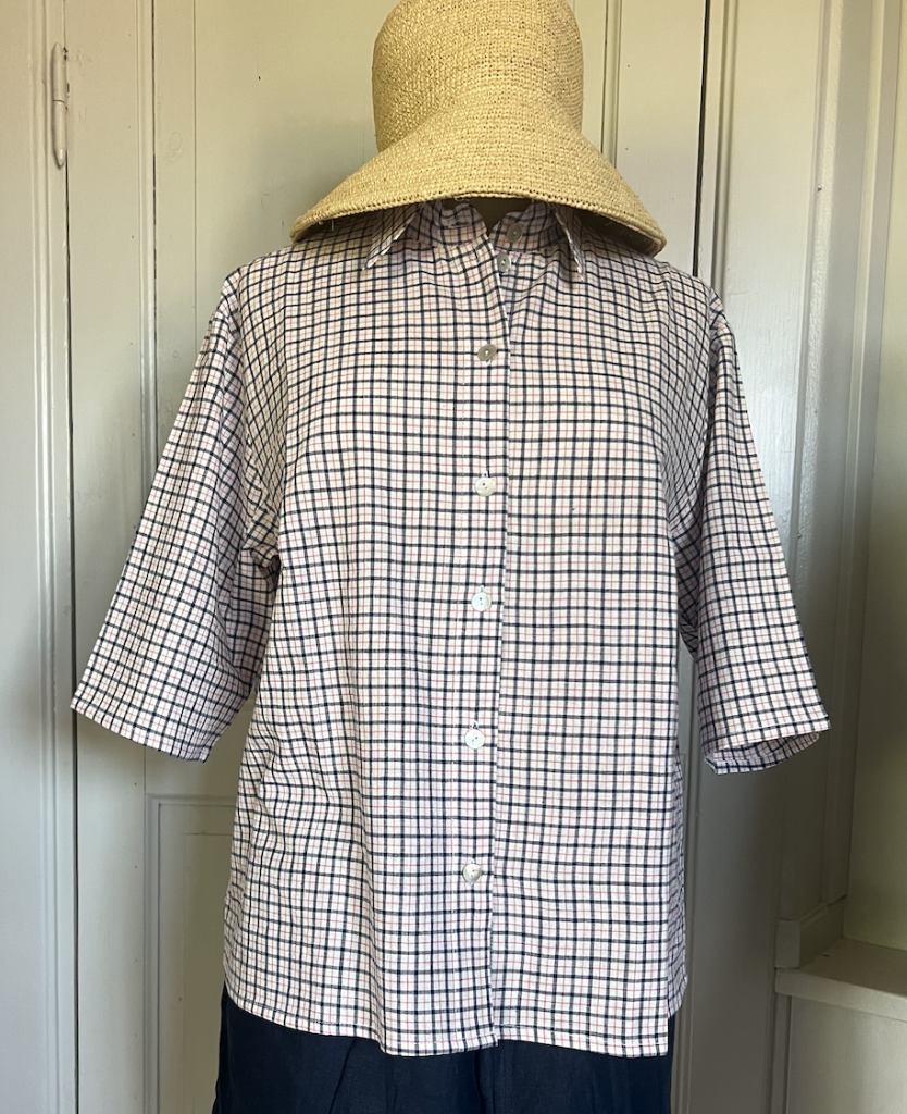 Rutig bomullsskjorta med kort ärm. 100% bomull.